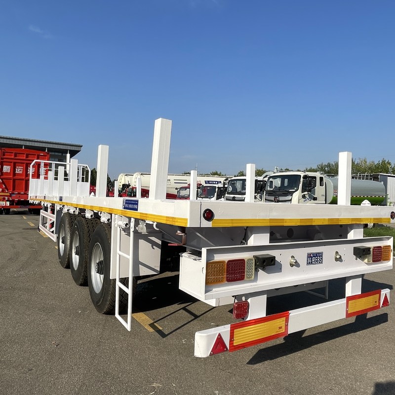 Τα οχήματα Wosheng Flatbed χρησιμοποιούνται συνήθως για τη μεταφορά εμπορευματοκιβωτίων 20FT / 40FT / 45FT. Όσο χαμηλότερο είναι το κέντρο βάρους, τόσο καλύτερη είναι η σταθερότητα και η ασφάλεια.όσο καλύτερη είναι η ικανότητα μεταφοράς υπερυψωμένων φορτίων και διέλευσης των ανωτάτων εμποδίων- ανάλογα με τον αριθμό των αξόνων και το μέγεθος των ελαστικών, το φορτίο του ημιρυμουλκούμενου με επίπεδη έδρα είναι επίσης διαφορετικό.και το εύρος φορτίου είναι μεταξύ 30-80 τόνων.